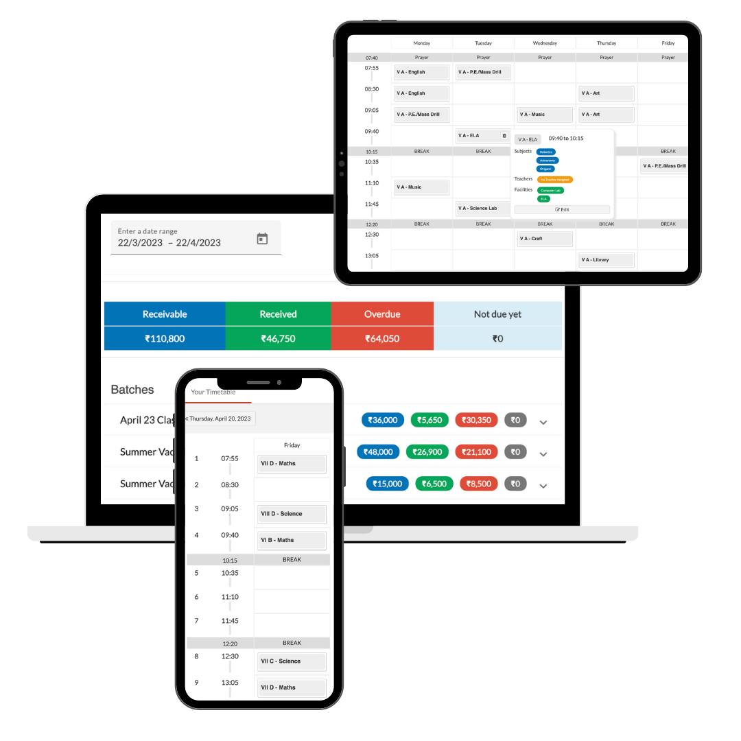 Drudgery should never stop you from doing what you love.Let Gatuvit take care of all the administrative tasks including timetables, daily substitutions, leave management, fee management, attendance, admissions & many more so that you can focus on what is most important & exciting - teaching.