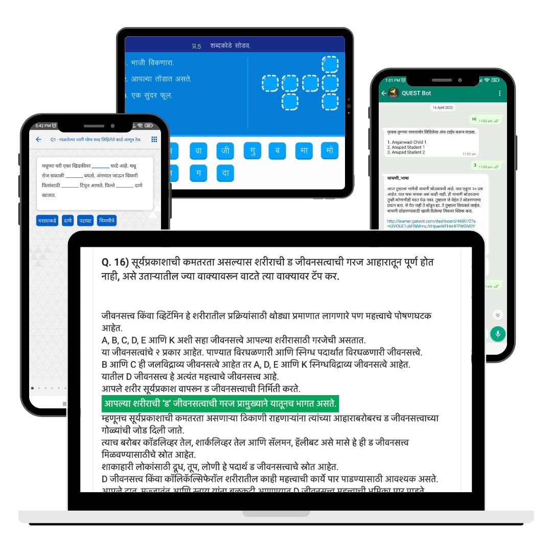 Don't want to download the app? Okay. Don't have internet connectivity? Fine. Don't have electricity? Absolutely fine.With our Web, Mobile, WhatsApp and Offline interfaces, we won't let anything on the earth stop you from teaching (and learning).After all, Gatuvit means 'path-finder' in Sanskrit.